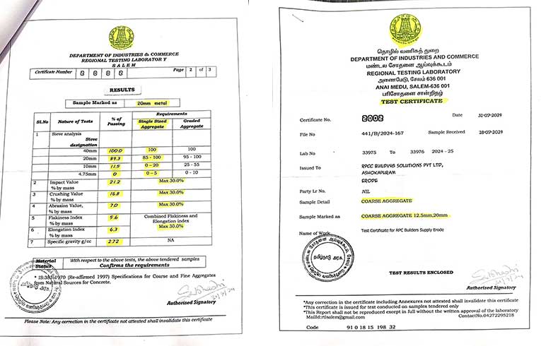 We are proud to be the first in India with an on-site material testing lab at our stock point. This facility allows us to perform thorough quality checks on all our materials, ensuring they meet the highest standards before delivery. We conduct rigorous testing every 15 days and provide certified testing certificates, affirming our dedication to quality and supporting your construction needs with confidence.